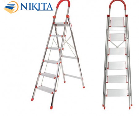 Thang ghế Inox Nikita IN-05 là dòng thang gia đình nhỏ gọn đang được yêu thích để dùng trong những nơi có diện tích nhỏ như gia đình,văn phòng hiện nay. Đặc điểm của dòng thang ghế tay vịn IN-05 là có tay vịn màu cam phía trên, có bậc lớn và khung làm bằng Inox có độ sáng bóng rất cao. Thang ghế Inox 5 bậc có chiều cao 1.2m thích hợp dùng trong gia đình, căn hộ hay dùng lấy tài liệu trong các văn phòng thư viện.